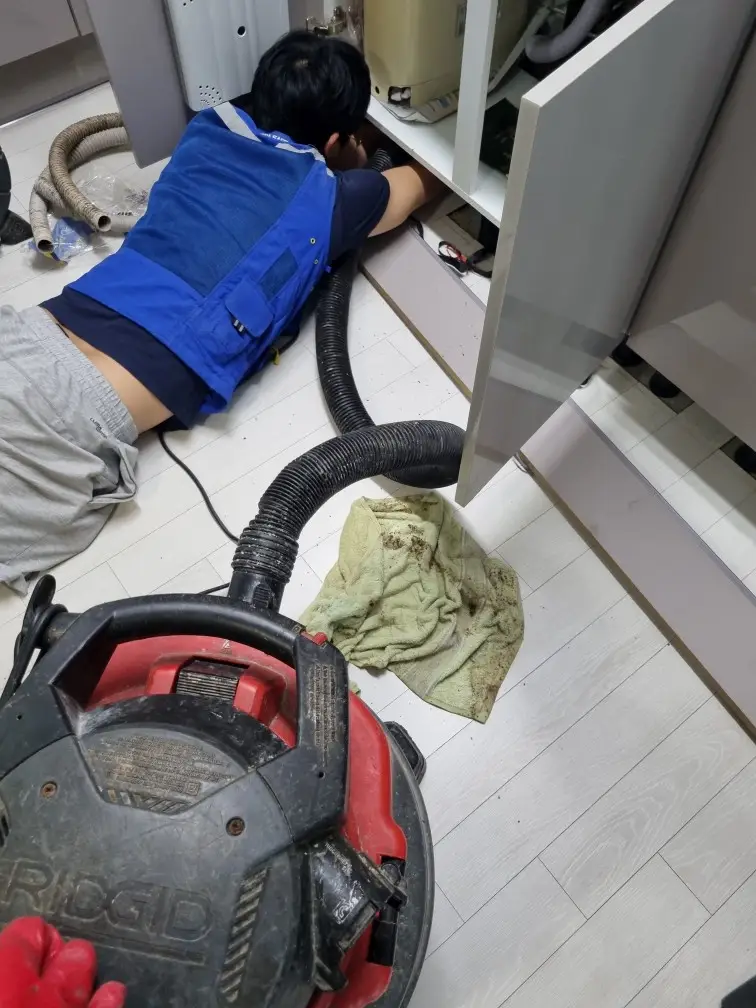 관통 작업 후 곧바로 뜨거운 물과 중성 세제를 흘려보내며 내부를 세척했습니다. 이어서 친환경 탈취제를 사용해 남아 있는 냄새를 잡고, 배수구 트랩을 분해해 잔여 이물질을 제거했습니다. 마지막으로 물을 가득 틀어 연속 배수 테스트를 진행하니 물이 단시간에 소용돌이치며 내려가 고객님이 크게 만족하셨습니다.